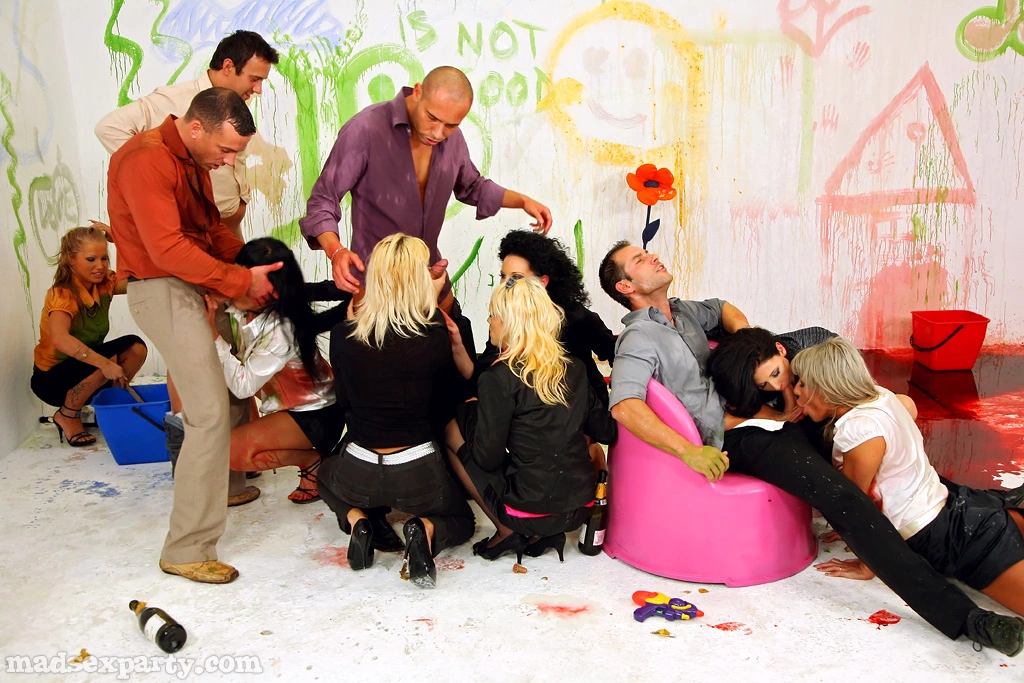 What happens when you have a tipsy gang of slammin' babes and some horny Hungarian dudes in a giant white room, give them paint guns, and allow them to go as wild as they want to? I'll give you a hint: the answer's not “make a memorial mural for Béla Bartók”! Nope, as you'd expect when you're surrounded by horny women like Yasmine Rouge, Suzan...